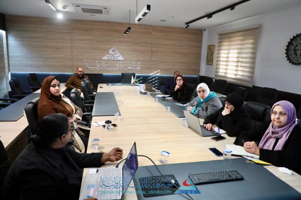 As part of its continuous efforts to consolidate its role as a scientific beacon with national responsibility, the Community Responsibility and Sustainability Agency at the Libyan International Medical University held its regular monthly meeting for February 2026 at the “National Unity” Hall, chaired by Professor Dr. Ali Saeed Al-Barghathi, Vice President for Community Responsibility and Sustainability.